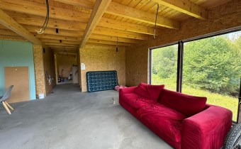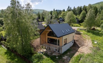 Nowo wybudowany budynek w technologii murowano-szkieletowej, podpiwniczony, wykończony został drewnem świerkowym, co dodaje mu wyjątkowego uroku i harmonizuje z bieszczadzką architekturą. Wysokiej jakości okna PCV firmy Vidok oraz aluminiowe okna tarasowe i na poddaszu, a także drewniane drzwi wejściowe podkreślają jego elegancję. Dach przygotowany jest do montażu fotowoltaiki.