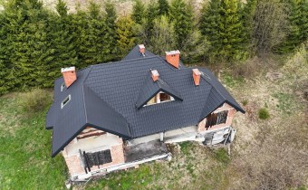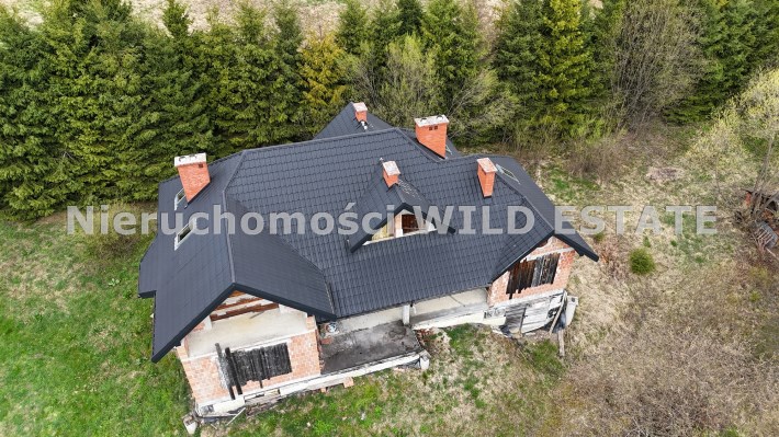 Budynek nr 2 – Dom murowany w stanie surowym otwartym (SSO) o powierzchni użytkowej ok 190 m2. Budynek składa się z podpiwniczenia pod całością budynku, które