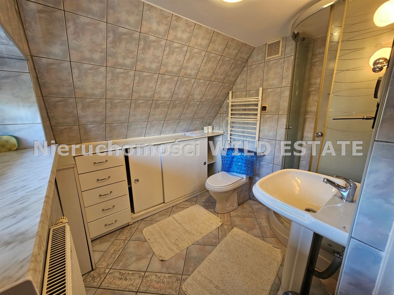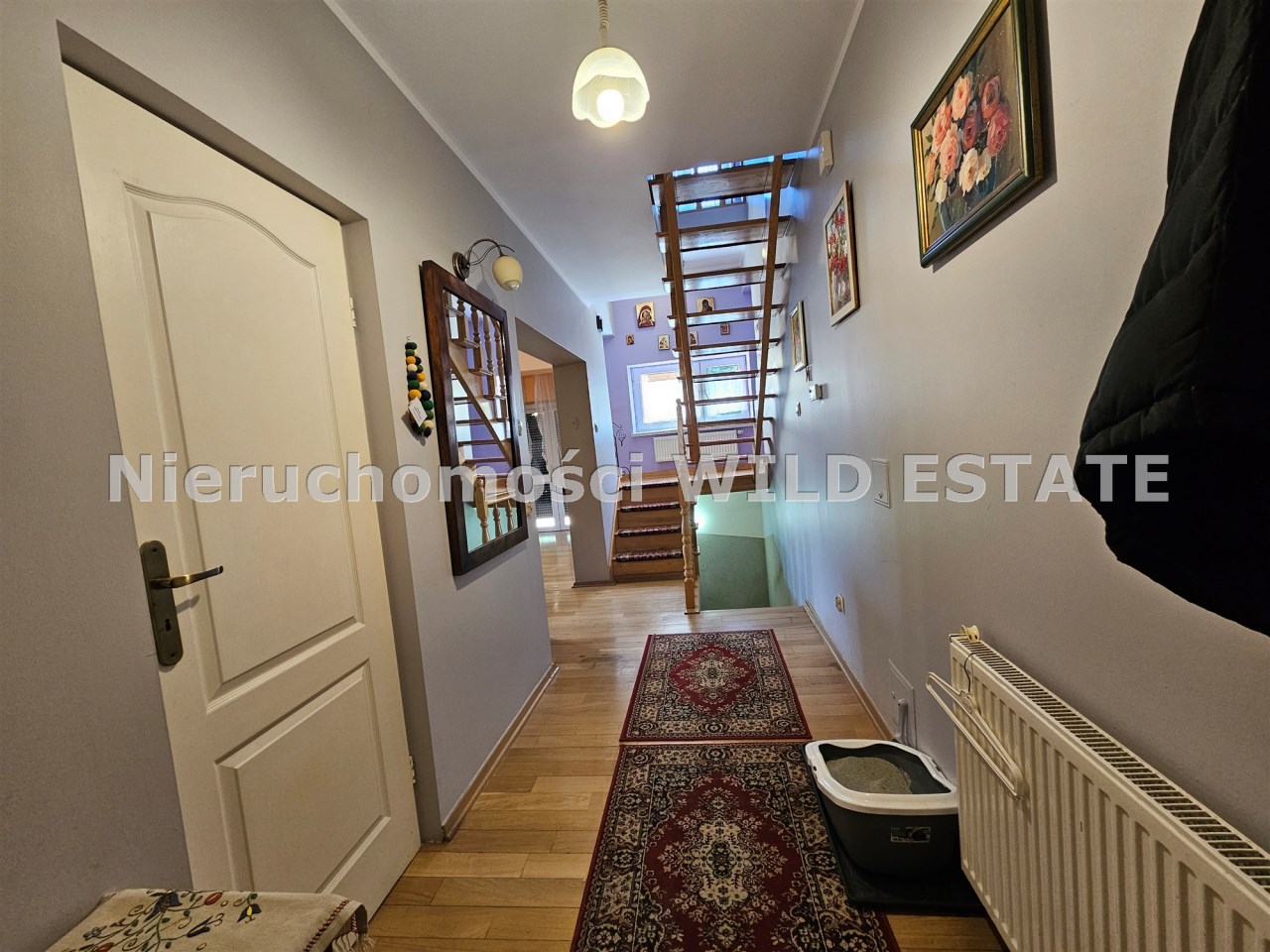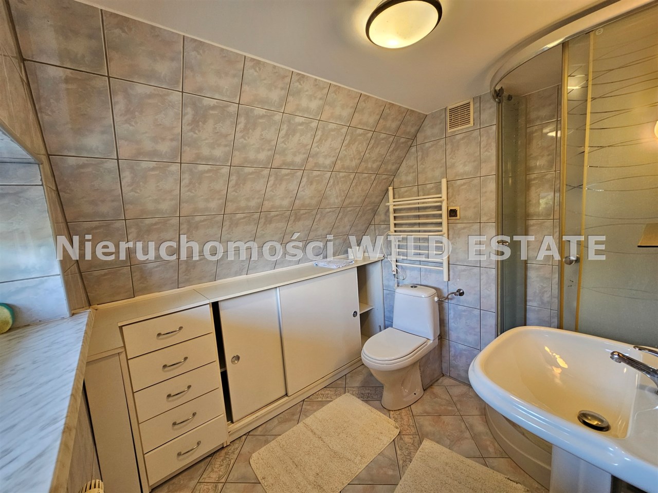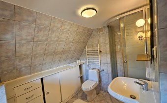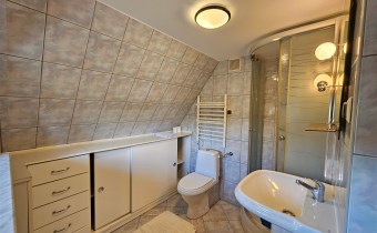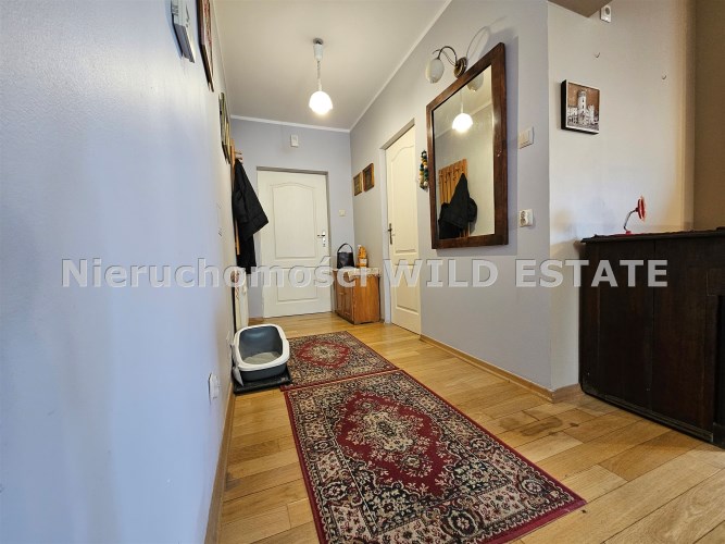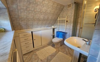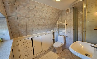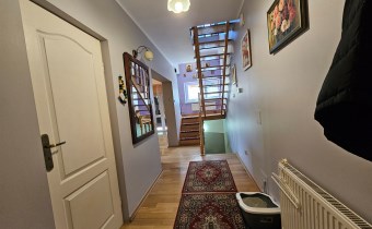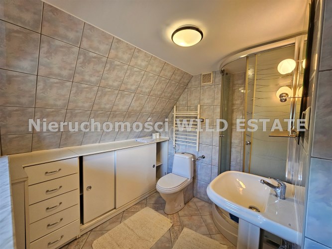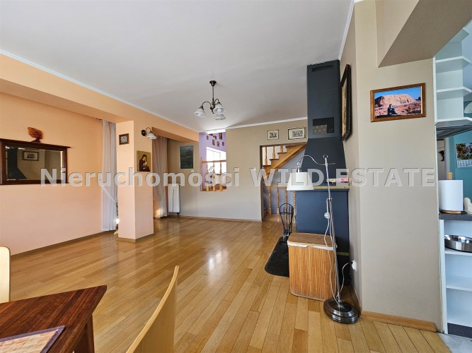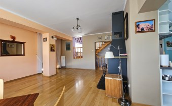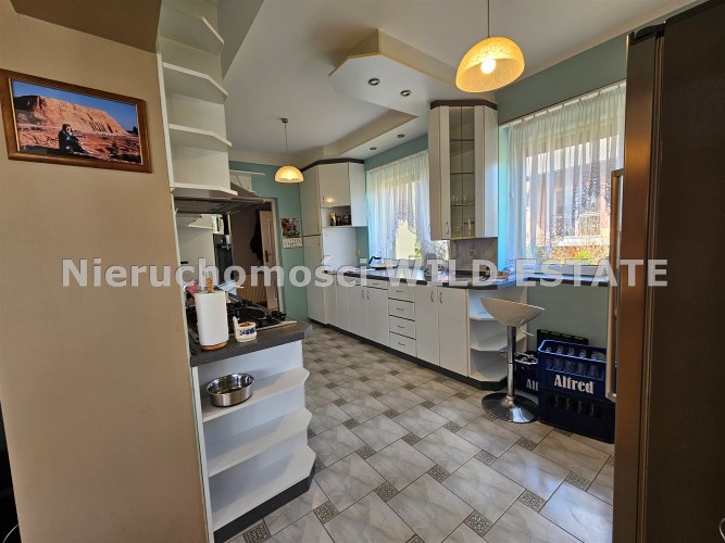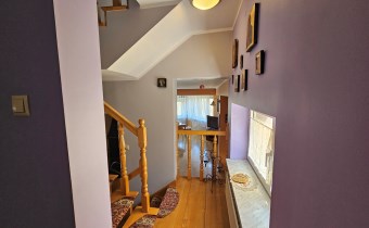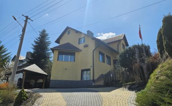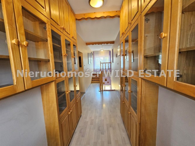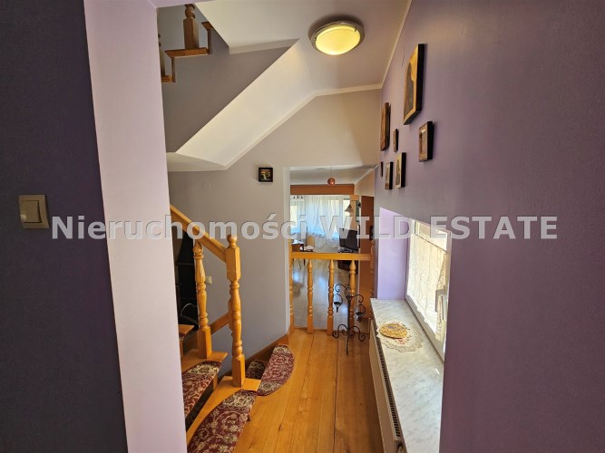 Mamy przyjemność przedstawić na sprzedaż przestronny, trzykondygnacyjny dom z lat 90. o powierzchni użytkowej 184,82 m² położony na prostokątnej, nachylonej działce o powierzchni 0,0793 ha. Budynek został wymurowany z cegły pełnej, ocieplony styropianem, dach kryty blachą. Budynek wyposażony w fotowoltaikę i kolektory słoneczne. Stolarka okienna dwuszybowa PVC. Stop nad piwnicą i parterem wykonany z płyt kanałowych, strop nad piętrem o konstrukcji drewnianej.