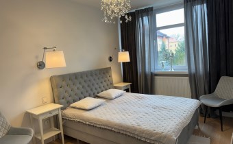 - Sypialnia: Szafa, duże łóżko, szafki nocne;