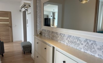 - Korytarz: wieszak na ubrania, szafka na buty, lustro;
