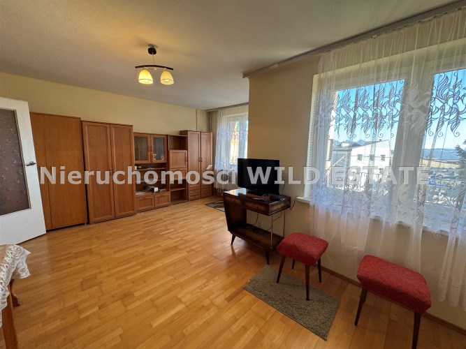 Lokal składa się z dwóch przestronnych pokoi w tym jeden z wyjściem na balkon, oddzielnej kuchni, łazienki z wc oraz przedpokoju. Mieszkanie posiada piwnicę o pow. ok. 8 m2. Czynsz w wysokości około 700 złotych.
